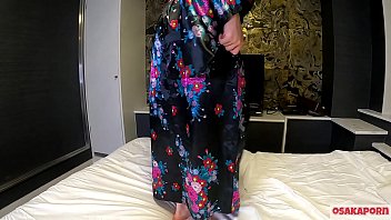Horny amateur Asian with hairy pussy in Japanese traditional costume enjoys masturbation with sex toy. Cosplay Japanese with cute boobs squirts. Sakura 8 OSAKAPORN