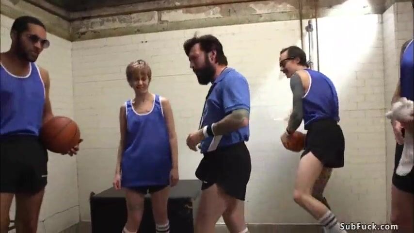 Basketball coach Tommy Pistol strips hairy pussy journalist Mercy West and with his team double penetration fucks and gangbang pounds her
