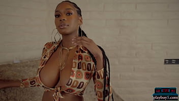 Huge boobs black babe shows off her amazing body with hairy pussy for Playboy