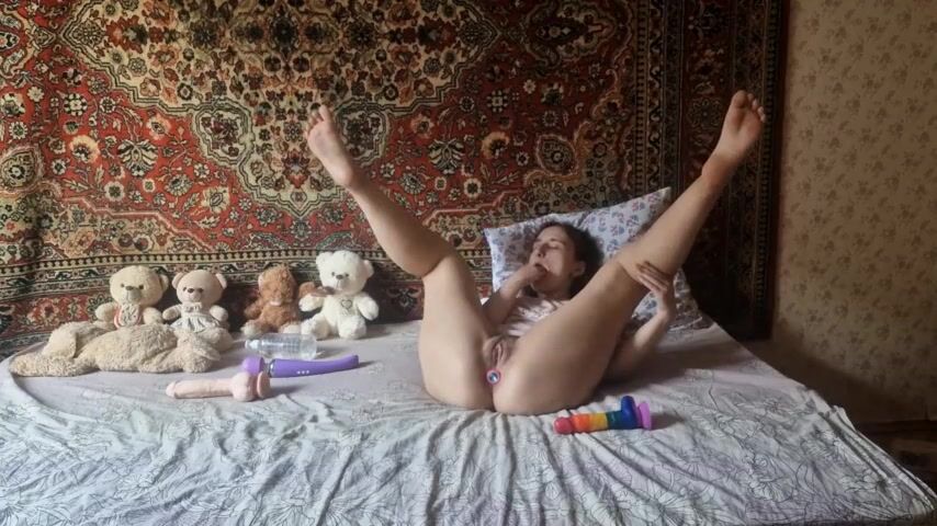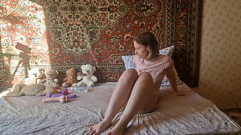 Girl have sex at home fucks hairy pussy with a toy and cums