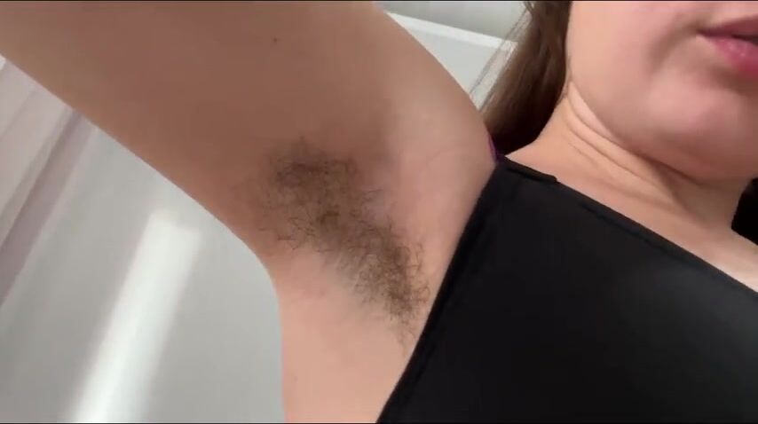 Hairy SexyMissMe didn't have shower after workout. She has sweaty hairy armpits and wants you to lick them, make them clean with your tongue